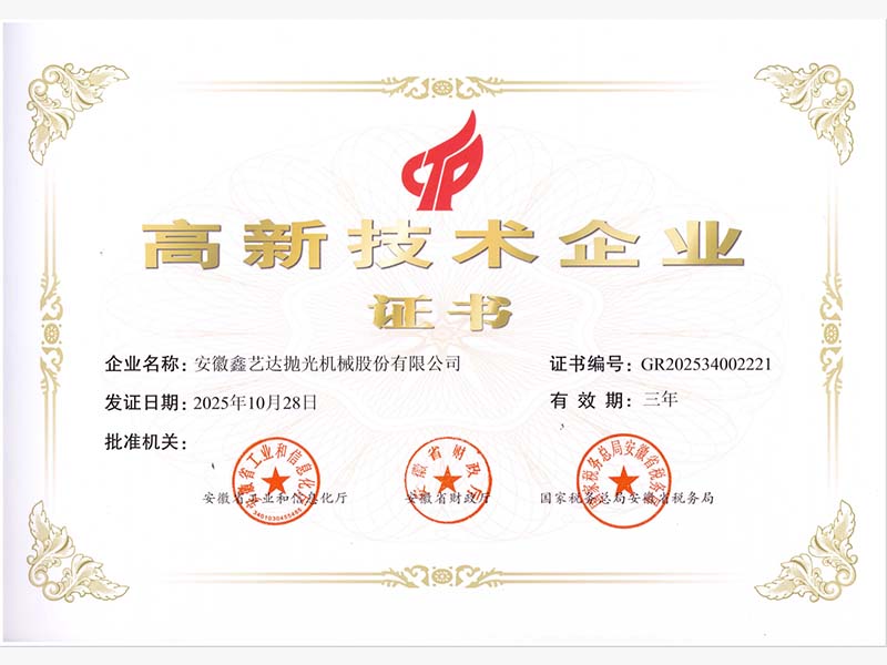 荣誉加冕,既是终点,亦是起点。安徽鑫艺达抛光机械股份有限公司将以高新技术企业为新的发展坐标,怀揣匠心、勇攀高峰,在抛光机械创新之路上步履不停,书写更加辉煌的发展篇章!
