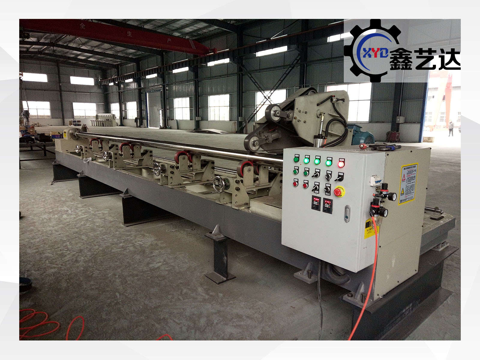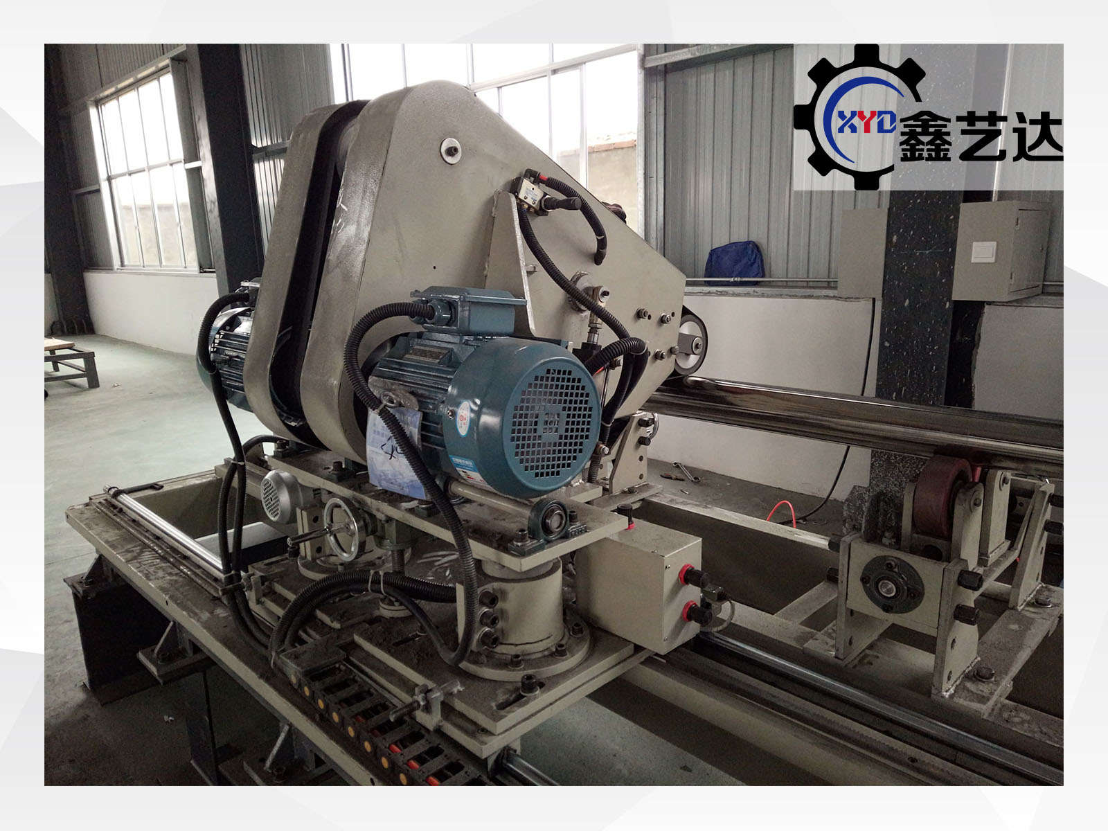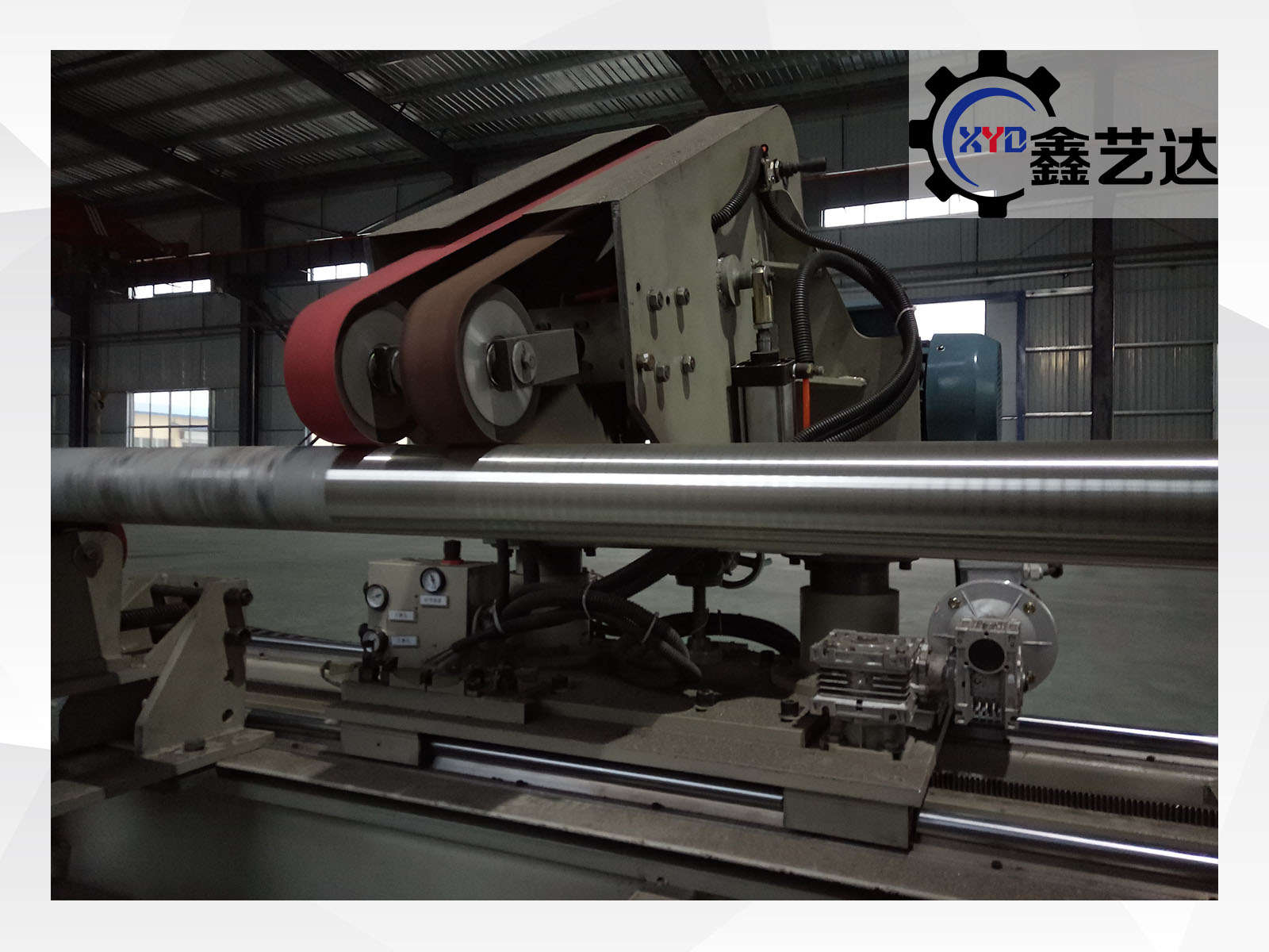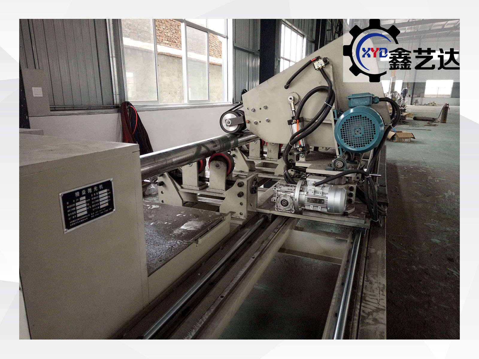 设备采用变频调速抛光系统,配备国标皖南二级高效能电机7.5KW及减速机4KW,保证磨头输出稳定、转速可调。整机配有3个高强度支撑架,最大支撑圆管长度8米,通过掉头可实现最长12米圆管的双端内外抛光作业。