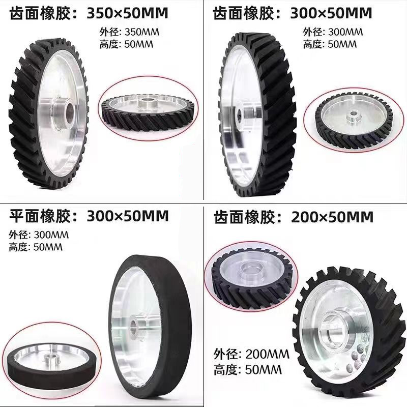 胶轮是砂带抛光机中砂带与工件接触的核心部件,安装在主轴上,用于支撑砂带并提供稳定的接触压力。胶轮具有良好的弹性,可吸收震动、缓冲抛光压力,使工件表面光洁度更高,广泛应用于不锈钢、铝制品、汽车零部件、五金件等表面处理领域。